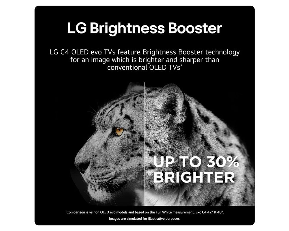 Powered by LG’s advanced SELF-LIT OLED evo technology, every pixel lights up independently for perfect black levels, 100% colour accuracy, and infinite contrast. Combined with Dolby Vision HDR, colours are more vibrant, highlights shine brighter, and shadow detail is richer than ever before.