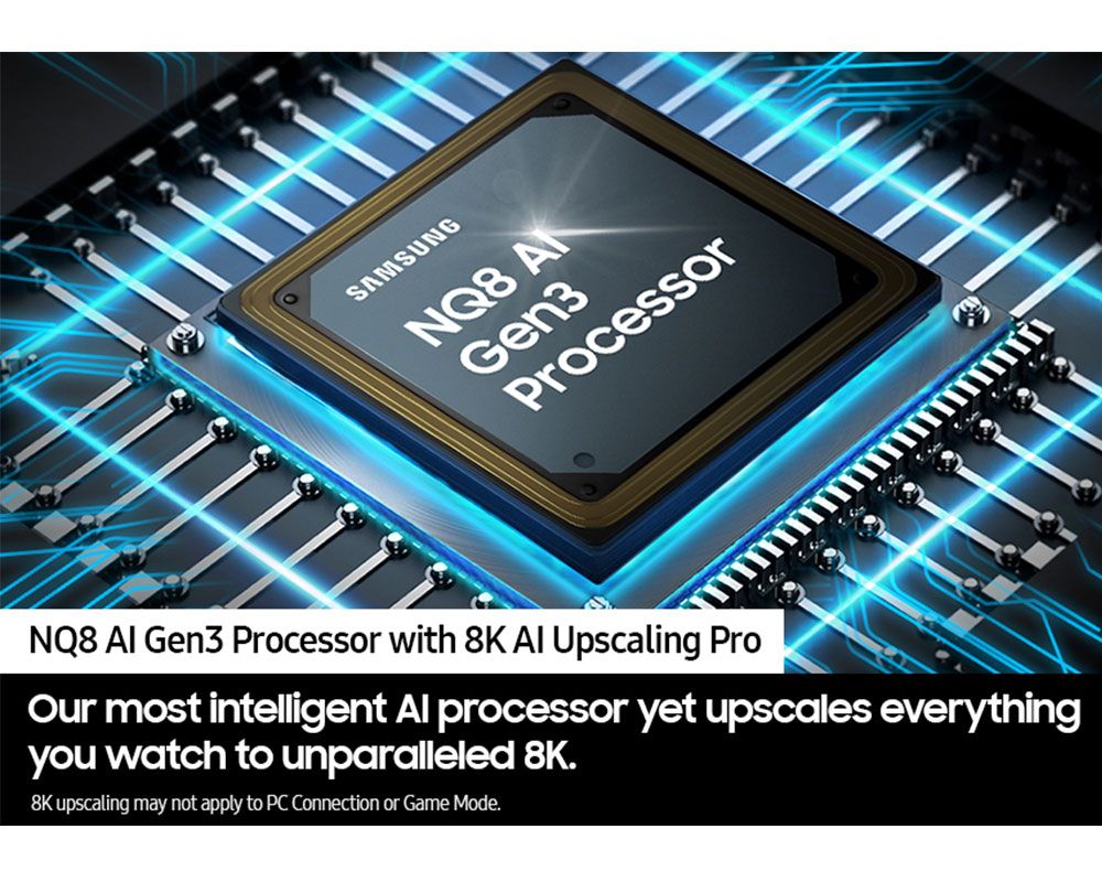 • NQ8 AI Gen3 Processor with 512 neural networks for superior upscaling to 8K resolution.